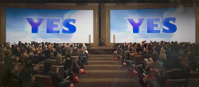 모든 사람들이 강연자의 선창을 따라 '예스'를 외치며 모든 일을 긍정적으로 받아 들이자는 모임이었다.